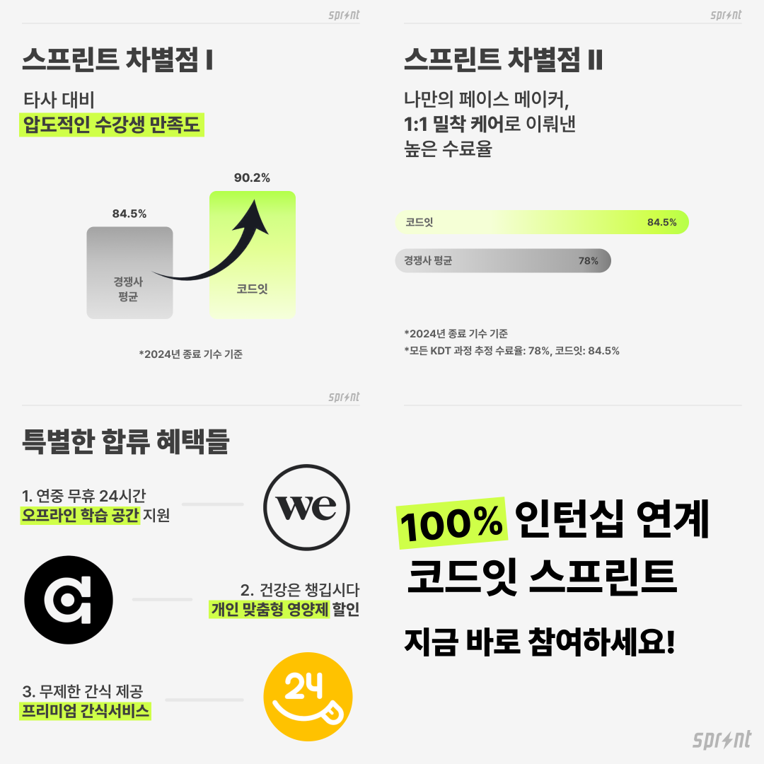 코드잇 스프린트와 공부도 하고 실무 경험도 쌓아요!