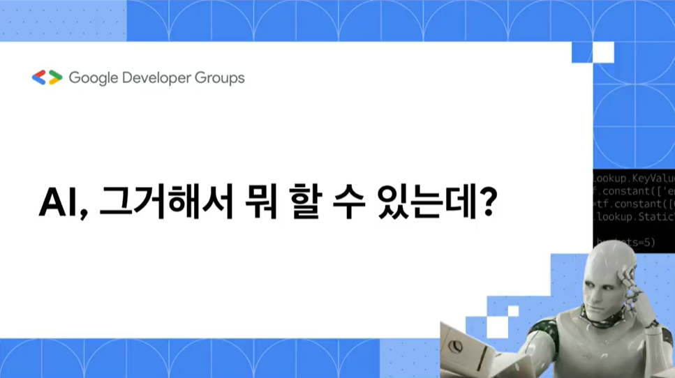 홍창희 님의 'AI 그거 해서 뭐 할 수 있는데?'에서는 AI와 AI를 활용하는 분야들에 대해 소개하는 세션이었습니다. 그리고 AI를 배워서 취업할 수 있는 분야에 대한 소개와 함께 의료 진단 모델 연구 쪽 대학원에 진학을 계획하고 해당 분야에 희망하게 된 자신의 계기까지 함께 이야기를 나누어주셨습니다!  |