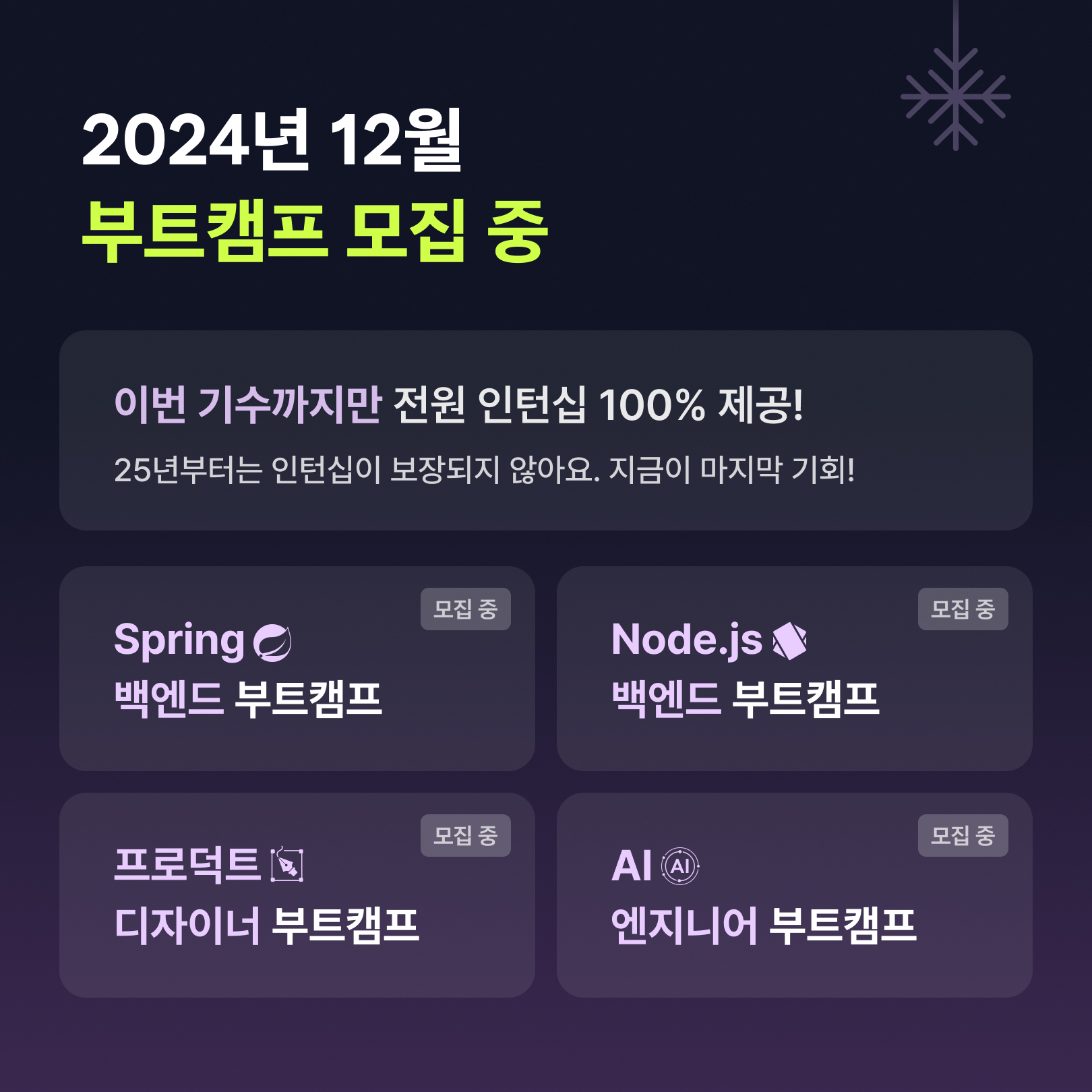 🚨[모집 마감 임박] 마지막 인턴십 100% 부트캠프🚨