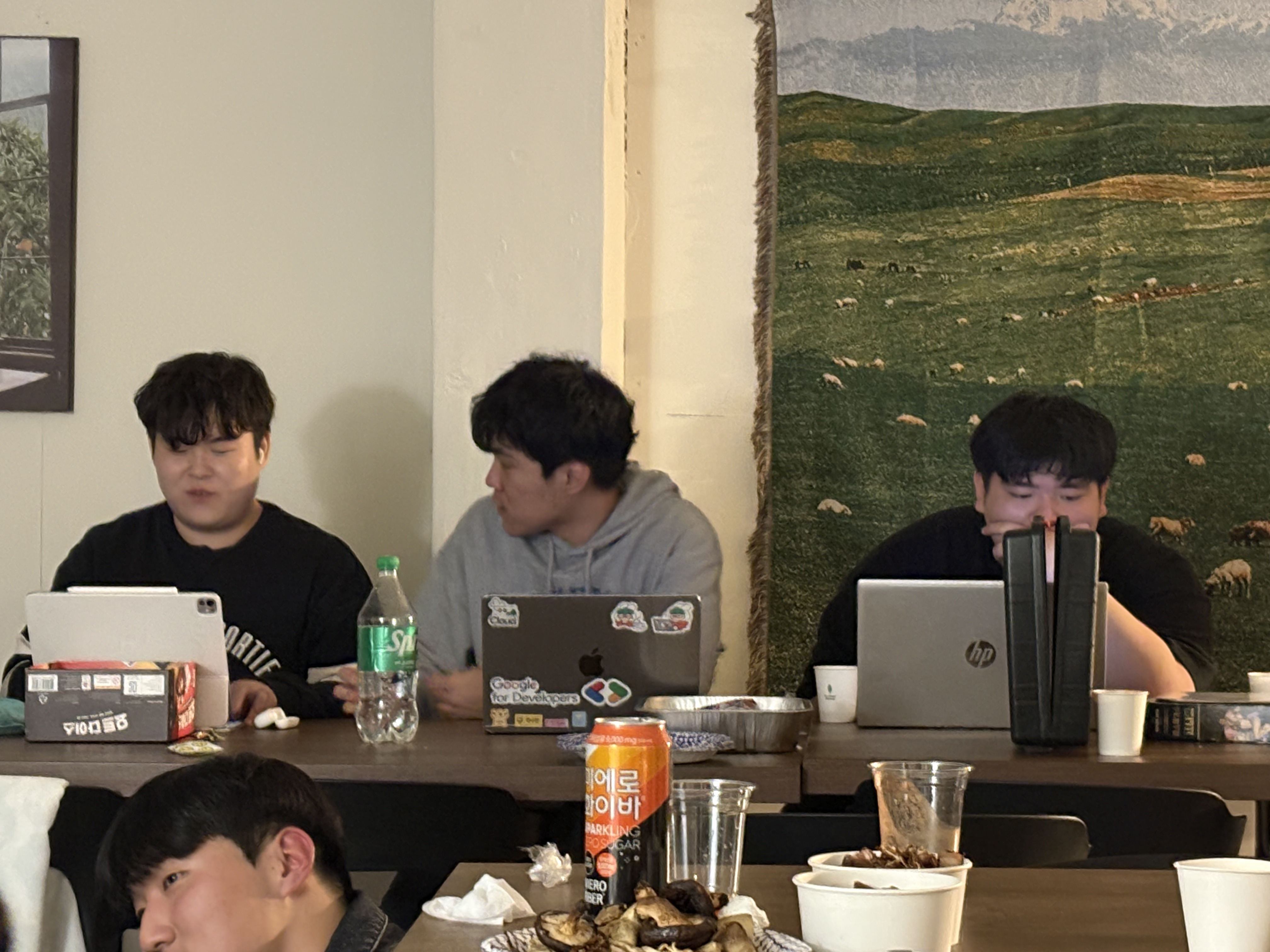 이후에는 같이 식사를 하며 같이 마시멜로우도 굽고, 그동안 못 나눴던 이야기도 나누고, 각자 게임을 하거나 코딩을 하는 활동을 진행했습니다.